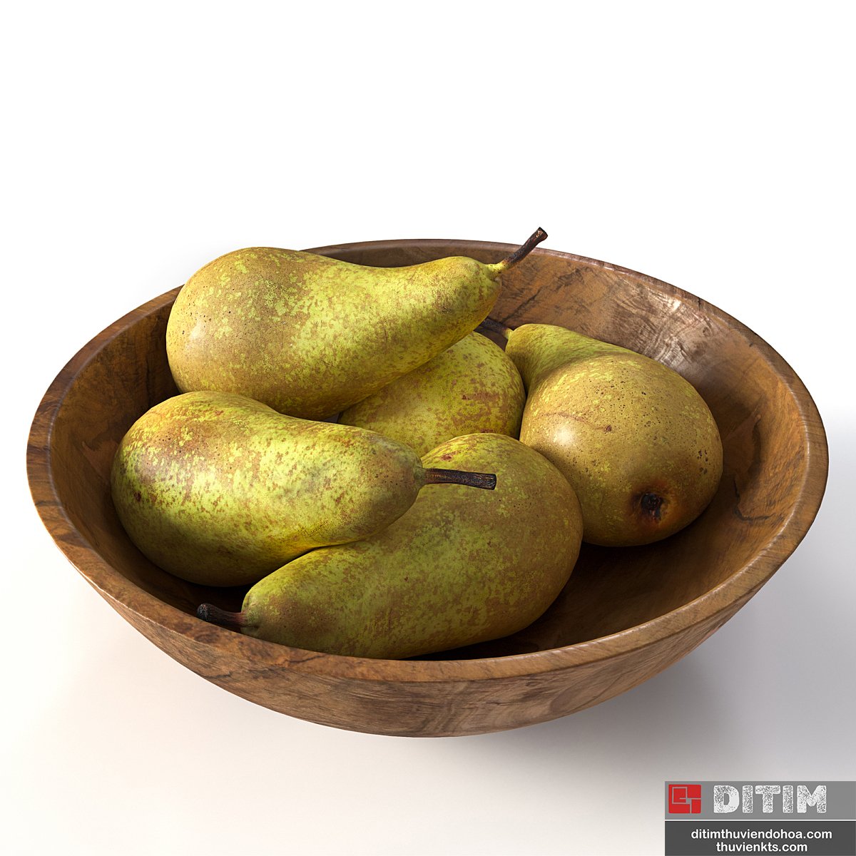 pears in a wooden bowl